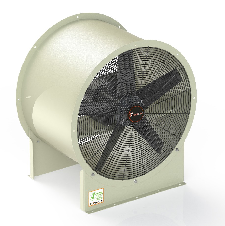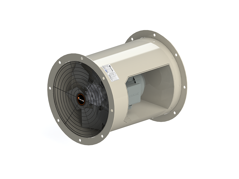 YUVARLAK KANAL TİPİ AKSİYAL KOVANLI FANLAR (MOTOR HAVA AKIMI DIŞINDA 180° DAYANIMLI)
