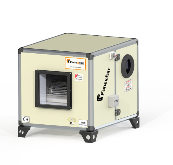 Kasası 0,70 mm ile 1 mm arasında galvaniz sacdan üretilir. Çift cidar olarak arasına 20 mm kalınlığında cam yünü doldurulmuştur. İskeleti alüminyum profilden olup köşeler plastiktir. Motor ve fan şase üzerinde kayış kasnak tahrikli ile çalışmaktadır. Titreşim önleyici lastik takozlar bulunup özel contalarla sızdırmazlık sağlanmıştır. Atış ağzı bağlantısı kauçuk konnektör ile bağlanmıştır. Motor gerdirme kızağı ile şaseye bağlanmıştır.